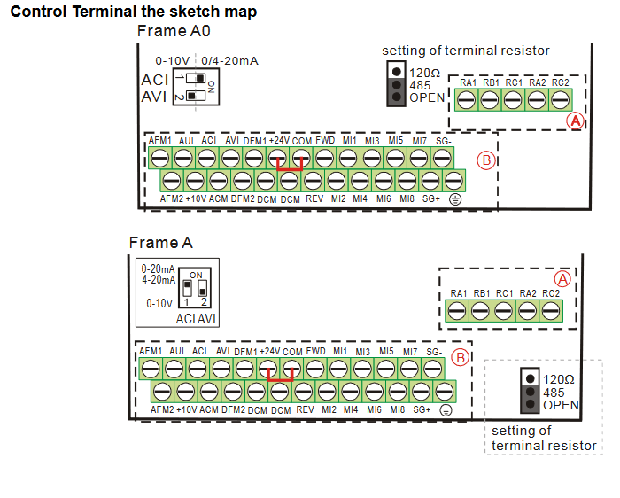 – The Aoc occurs due to the short circuit or ground fault at the output side of the drive. Check for possible short circuits between terminals with the electric meter: B1 corresponds to U, V and W; DC- corresponds to U, V and W; corresponds to U, V and W.