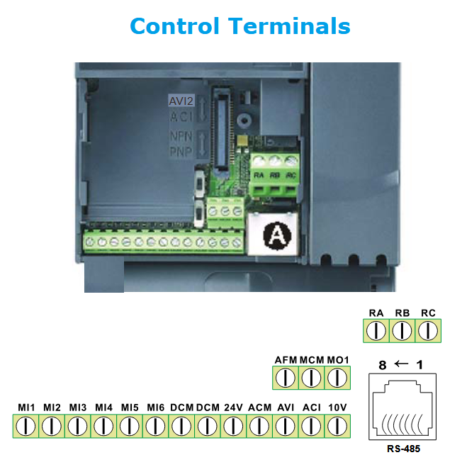 1. When multi-function input terminals are set to external fault, the AC motor drive stops output.‹